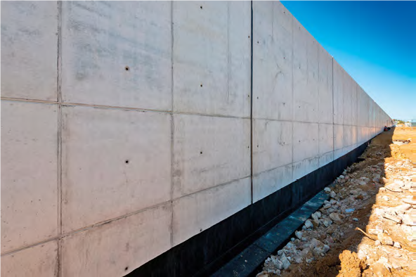 Pozostałe widoczne elementy betonowe będące środkiem wyrazu w architekturze tej budowli nawiązują do geometrii statku. Na powierzchni murów oporowych tworzących burty o wysokości od 3 m do 6 m należało regularnie rozmieścić styki oraz zharmonizować z nimi położenie ściągów i przerw roboczych. Ambitnym celem było zaproponowanie takiego podziału na działki technologiczne,